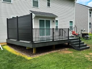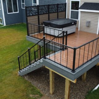 Trex decking with Westbury privacy panels and railing. Landscaping and hot tub to come!